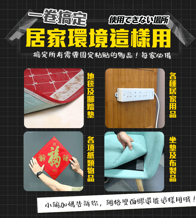 限時搶購 【升級款網格雙面膠】 萬物皆可黏,牢固不會掉,方便好用不留殘膠 初粘性和持粘性特別好,適用五金木材等 ✓ 水洗吹乾可重復使用-賦能小鋪